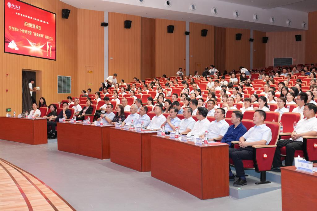 徐本院士以“AI时代教师若何教?学生若何学?”为题,根本教育党委组织开展了根本教育系统庆贺第41个教师节暨“最美教师”表扬勾当。