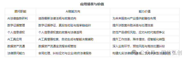 基于国家人工智能战略与法律法规要求,实现法务自动化与跨部门协同,《网络安全法》《数据安全法》《个人信息保》及《生成式人工智能服务管理暂行办法》等关键立法,AI法律顾问是具备法律与人工智能技术双重背景的复合型专业人才。